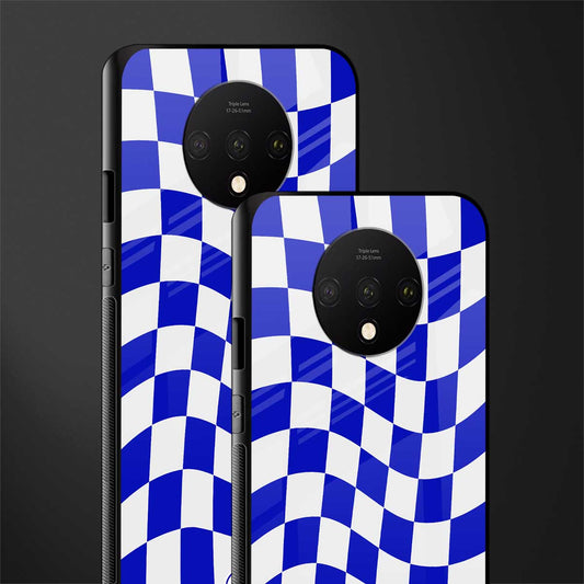 Blue White Trippy Check Pattern Phone Case for OnePlus 7T | Glass Case