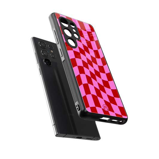 Red Pink Trippy Check Pattern Phone Case for Samsung Galaxy S25 Ultra | Glass Case