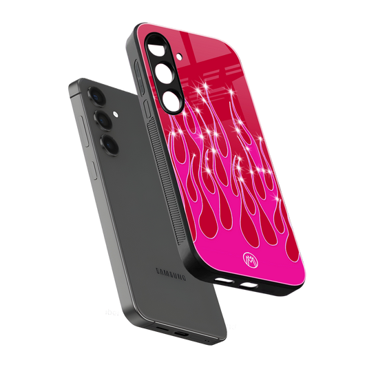 Y2k Magenta Glittery Flames Phone Case for Samsung Galaxy S25 Plus | Glass Case