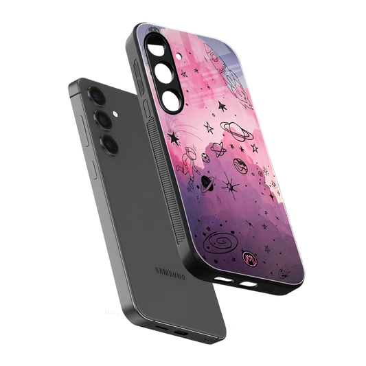 Space Pink Aesthetic Phone Case for Samsung Galaxy S25 | Glass Case