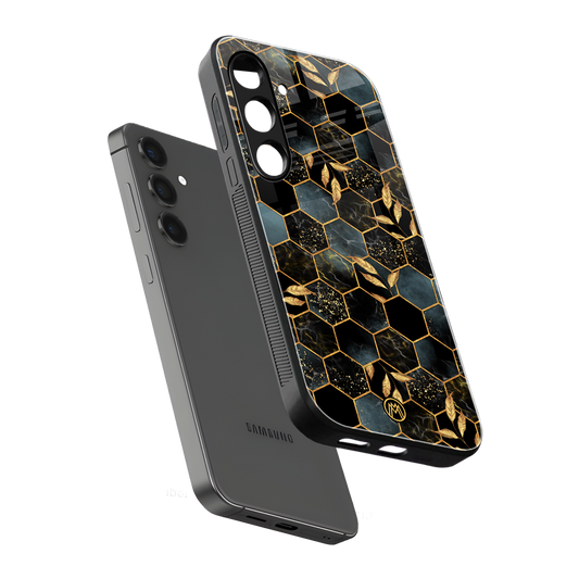 Black Blue Tile Marble Phone Case for Samsung Galaxy S24 FE | Glass Case