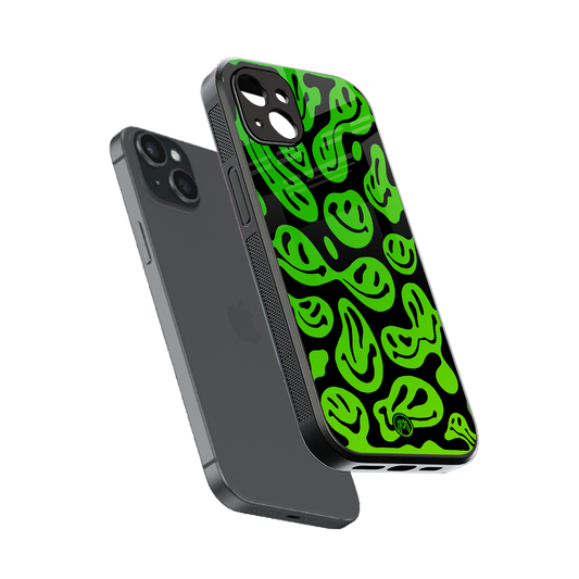Acid Smiles Neon Green Phone Case for Iphone 15 | Glass Case