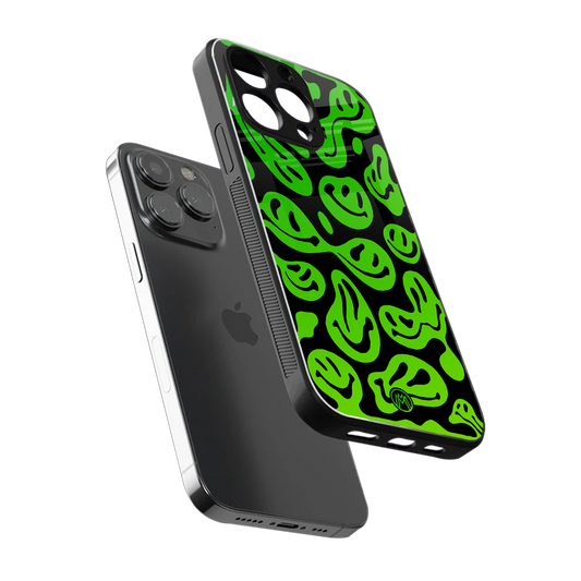 Acid Smiles Neon Green Phone Case for Iphone 14 Pro Max | Glass Case