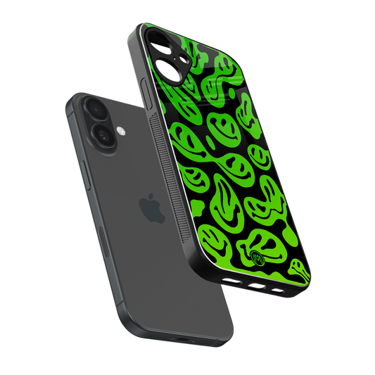 Acid Smiles Neon Green Phone Case for Iphone 16 Plus | Glass Case