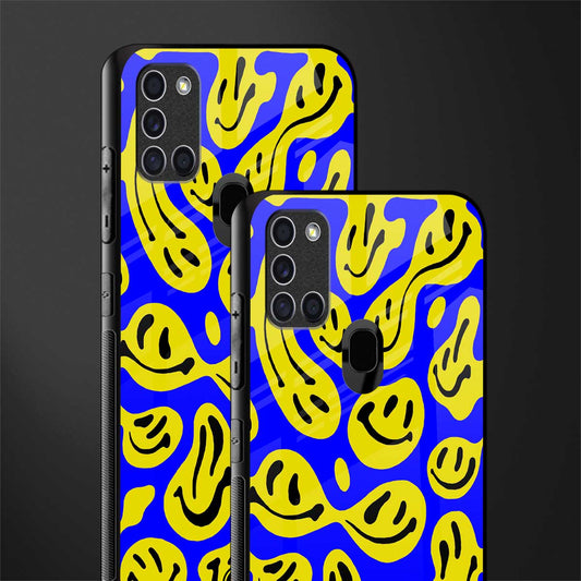 Acid Smiles Yellow Blue Phone Case for Samsung Galaxy A21s | Glass Case