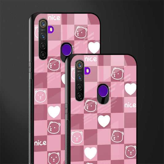 Aesthetic Bear Pattern Pink Edition Glass Case for Realme 5 Pro