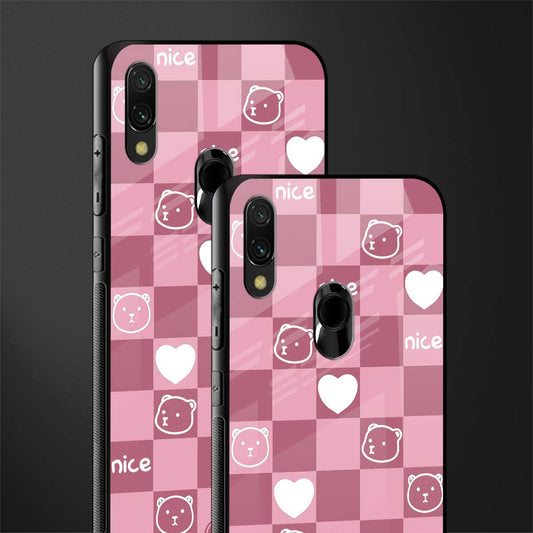 Aesthetic Bear Pattern Pink Edition Glass Case for Redmi 7/Redmi Y3