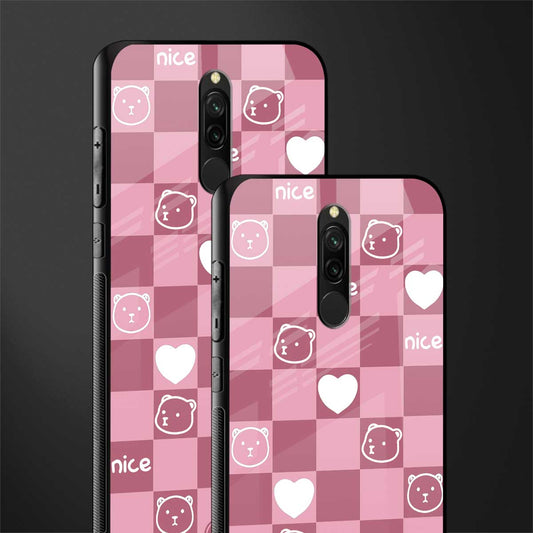 Aesthetic Bear Pattern Pink Edition Glass Case for Redmi 8A
