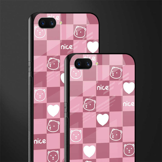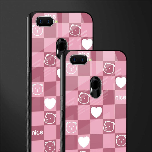 Aesthetic Bear Pattern Pink Edition Glass Case for Oppo A7