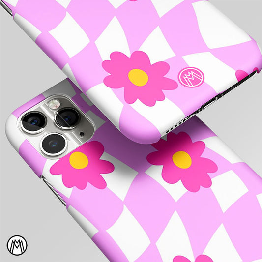 Pink Flowers Checkered Matte Case Phone Cover