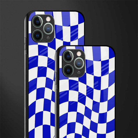 Blue White Trippy Check Pattern Phone Case for IPhone 11 Pro Max | Glass Case