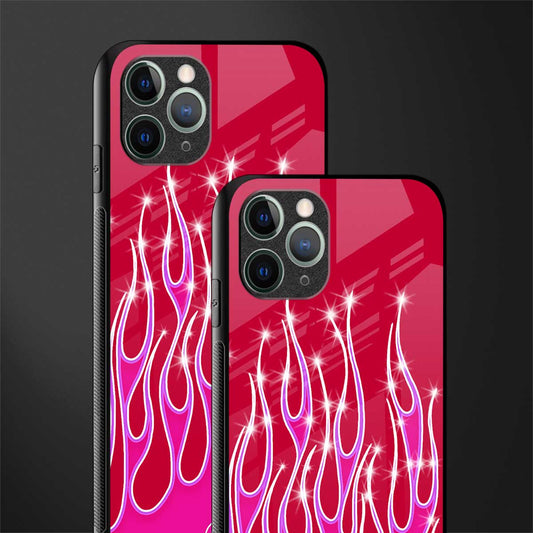 Y2k Magenta Glittery Flames Phone Case for IPhone 11 Pro Max | Glass Case