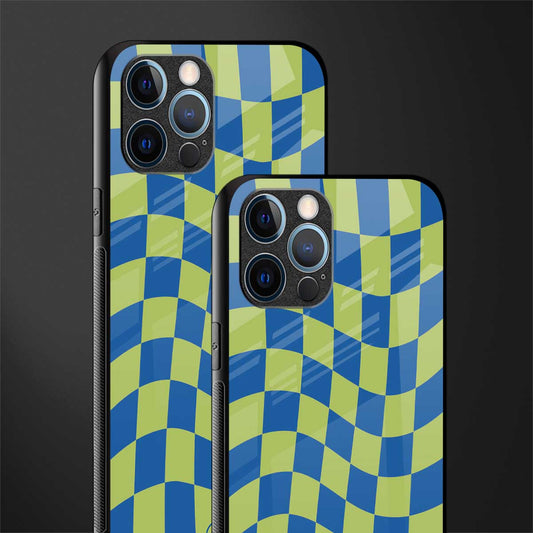 Green Blue Trippy Check Pattern Phone Case for IPhone 12 Pro max | Glass Case