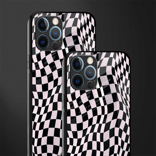Trippy B&W Check Pattern Phone Case for IPhone 12 Pro max | Glass Case