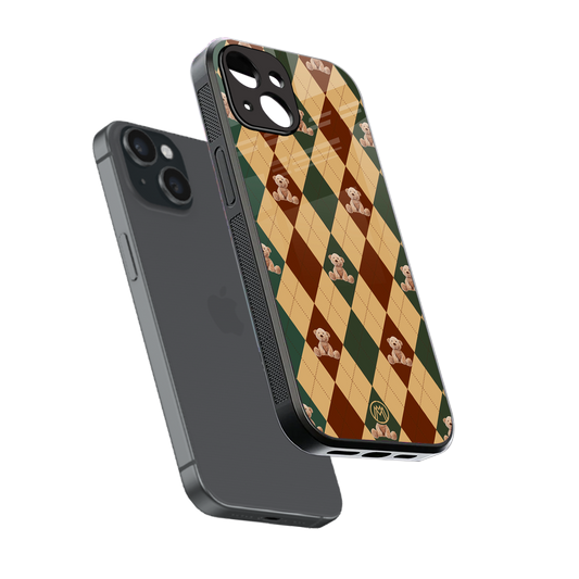 Ted Checkered Pattern Phone Case for Iphone 15 | Glass Case
