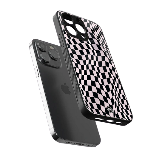 Trippy B&W Check Pattern Phone Case for Iphone 15 Pro Max | Glass Case