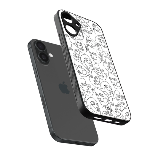 Many Faces White Phone Case for Iphone 16 Plus | Glass Case