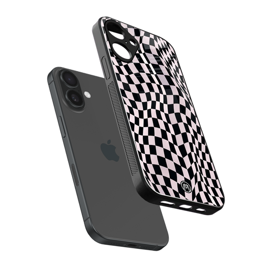 Trippy B&W Check Pattern Phone Case for Iphone 16 Plus | Glass Case