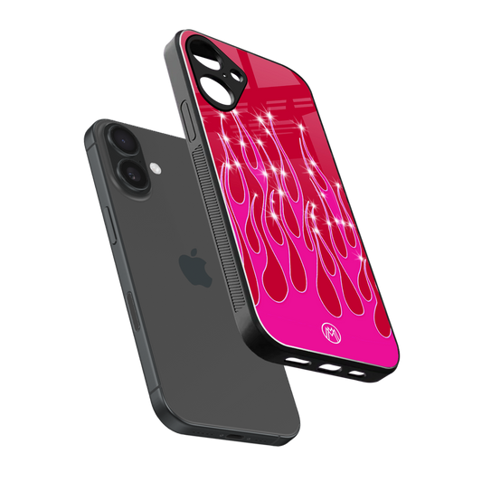 Y2k Magenta Glittery Flames Phone Case for Iphone 16 Plus | Glass Case