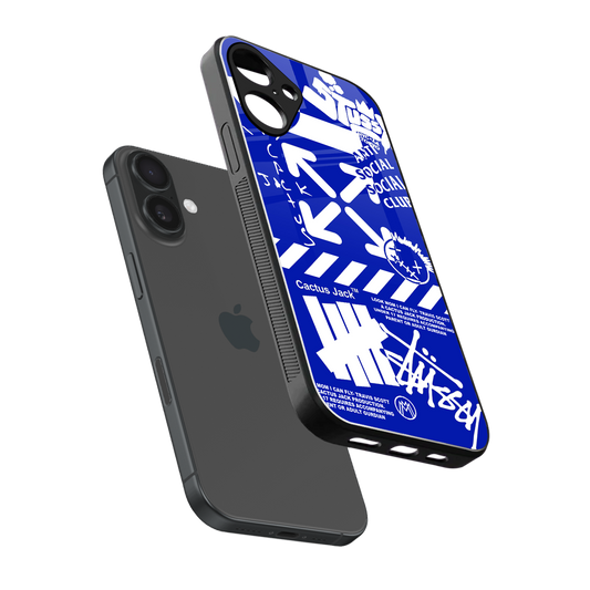 Blue Travis Scott X Anti Social Social Club Phone Case for Iphone 16 Plus | Glass Case
