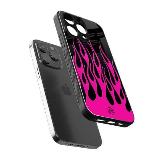 Y2k Black Pink Flames Phone Case for Iphone 16 Pro | Glass Case