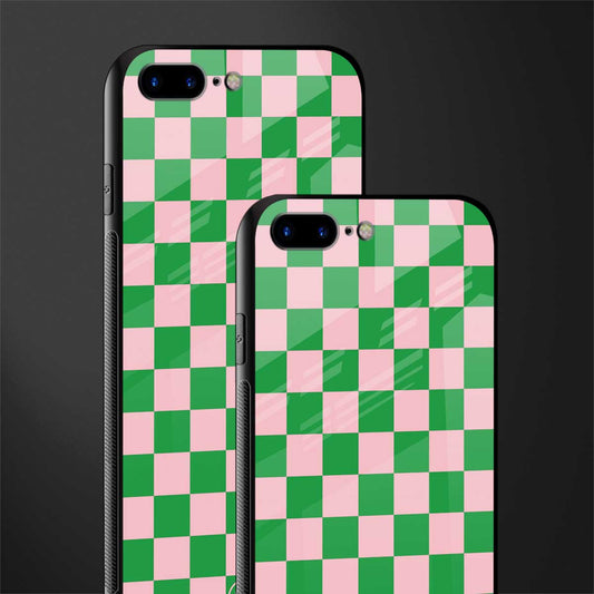 Pink & Green Check Pattern Phone Case for IPhone 8 Plus | Glass Case
