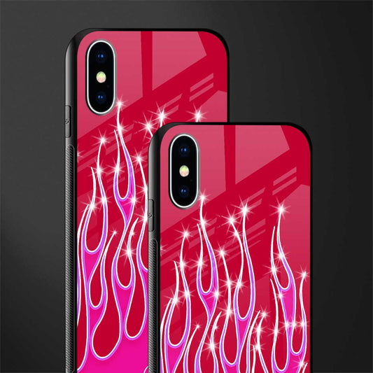 Y2k Magenta Glittery Flames Phone Case for IPhone XS | Glass Case
