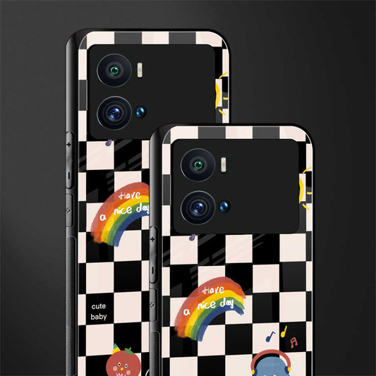 Yellow Blue Trippy Check Pattern Phone Case for iQOO 9 Pro | Glass Case
