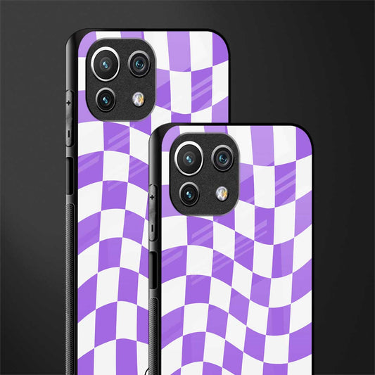 Purple White Trippy Check Pattern Glass Case for Mi 11 Lite
