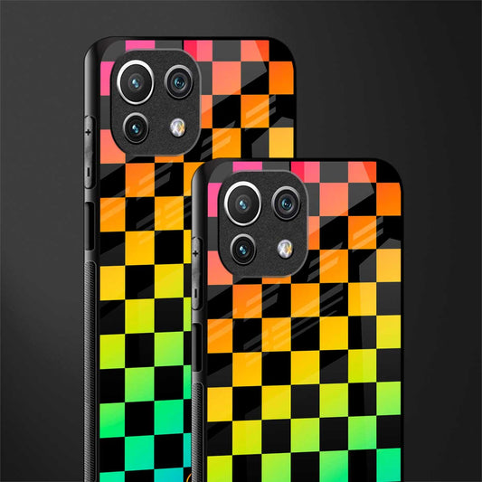 Rainbow Check Pattern Glass Case for Mi 11 Lite