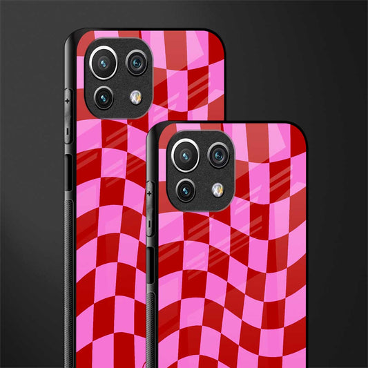Red Pink Trippy Check Pattern Glass Case for Mi 11 Lite