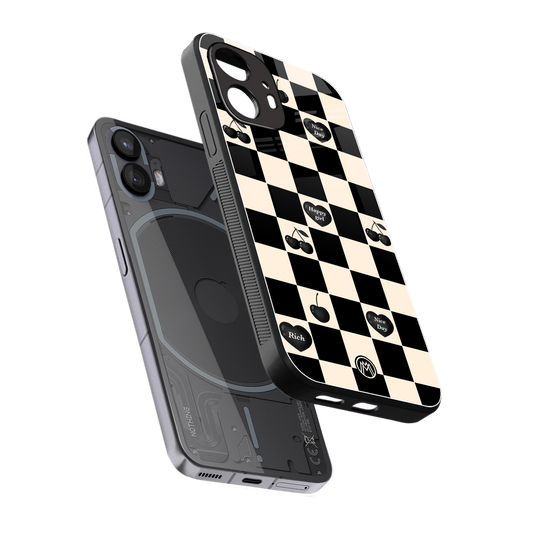 Black Cherries Check Pattern Phone Case for Nothing Phone 2 | Glass Case