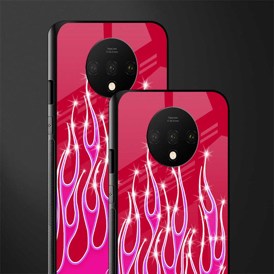 Y2k Magenta Glittery Flames Glass Case for OnePlus 7T
