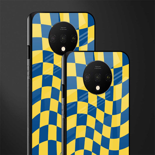 Yellow Blue Trippy Check Pattern Glass Case for OnePlus 7T