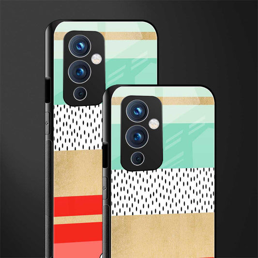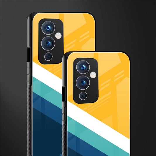 Yellow White Blue Pattern Stripes Phone Case for OnePlus 9 | Glass Case