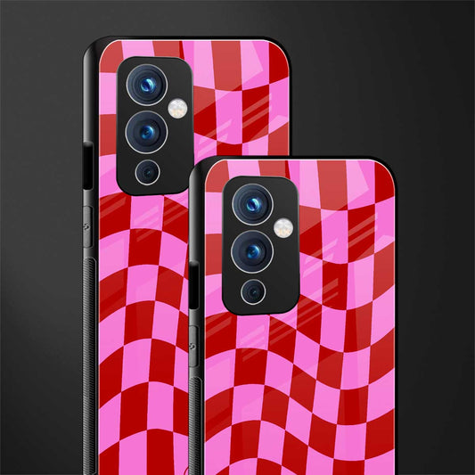 Red Pink Trippy Check Pattern Phone Case for OnePlus 9 | Glass Case