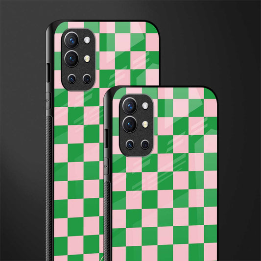 Pink & Green Check Pattern Phone Case for OnePlus 9R | Glass Case