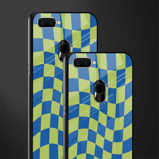 Green Blue Trippy Check Pattern Phone Case for Oppo A12 | Glass Case