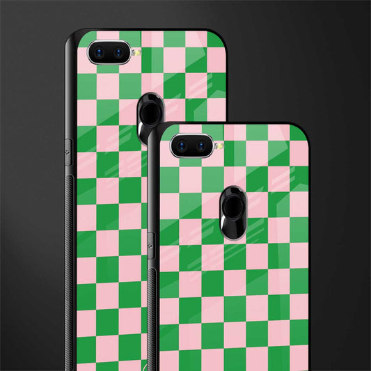 Pink & Green Check Pattern Glass Case for Oppo A12