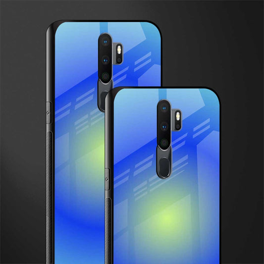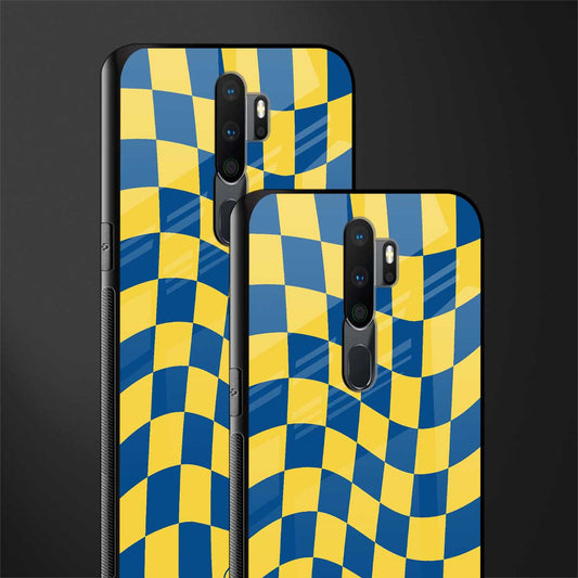 Yellow Blue Trippy Check Pattern Glass Case for Oppo A9 2020