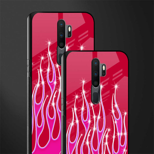 Y2k Magenta Glittery Flames Glass Case for Oppo A9 2020