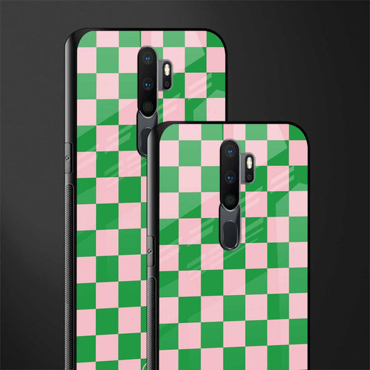Pink & Green Check Pattern Glass Case for Oppo A9 2020