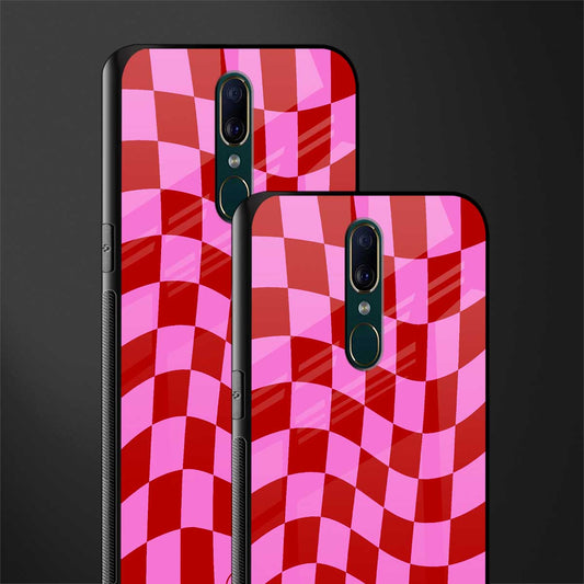 Red Pink Trippy Check Pattern Glass Case for Oppo A9