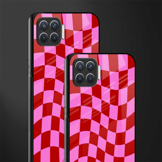 Red Pink Trippy Check Pattern Phone Case for Oppo F17 Pro | Glass Case