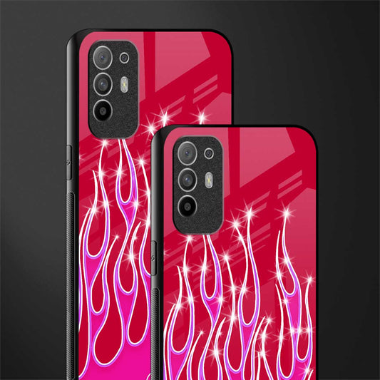 Y2k Magenta Glittery Flames Phone Case for Oppo F19 Pro Plus | Glass Case