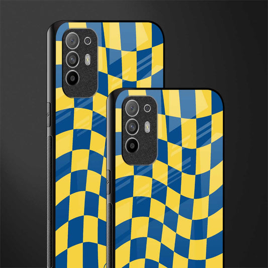 Yellow Blue Trippy Check Pattern Phone Case for Oppo F19 Pro Plus | Glass Case