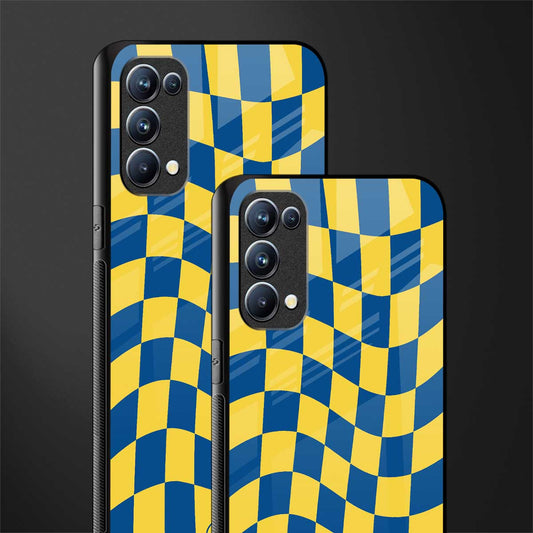 Yellow Blue Trippy Check Pattern Glass Case for Oppo Reno 5 Pro