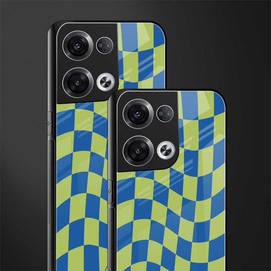 Green Blue Trippy Check Pattern Phone Case for Oppo Reno 8 | Glass Case
