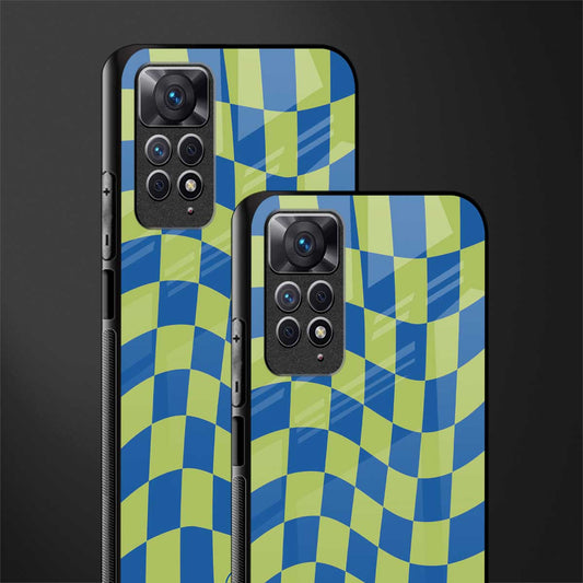 Green Blue Trippy Check Pattern Phone Case for Redmi Note 11 Pro Plus 4G/5G | Glass Case