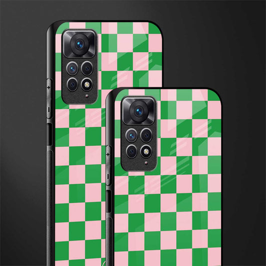 Pink & Green Check Pattern Phone Case for Redmi Note 11 Pro Plus 4G/5G | Glass Case